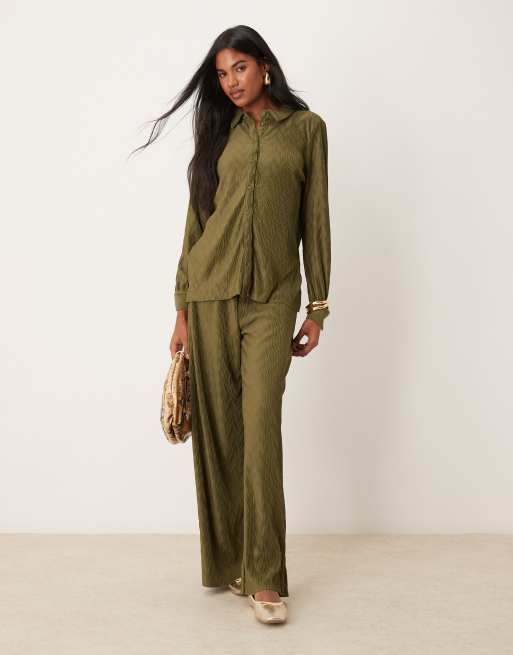 VILA – Plissee-Hose in dunklem Olivgrün mit weitem Bein, Kombiteil