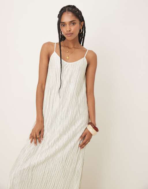 VILA – Plissiertes Maxi-Trägerkleid in blassem Silt-Grün mit Batikoptik