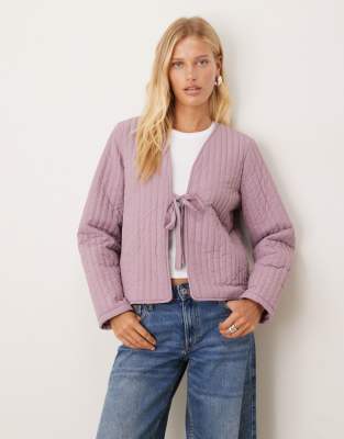 VILA – Steppjacke in blassem Mauve mit Bindedetail vorn