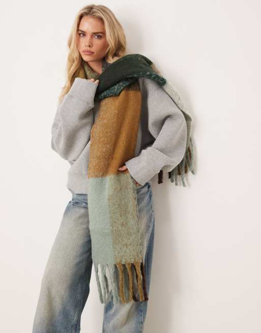 VILA – Superweicher Fransenschal mit Karomuster in Grün und gedeckten Farben