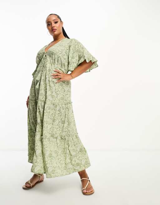 Violet Romance Plus – Gestuftes, wadenlanges Kleid mit Rüschenärmeln und Paisley-Muster