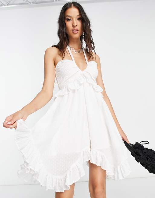 Violet Romance – Minikleid in Weiß mit asymmetrischem Saum und Neckholder