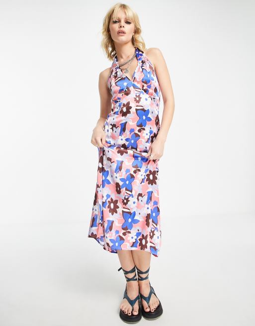 Violet Romance – Neckholder-Midikleid aus Satin mit auffälligem Blumenmuster