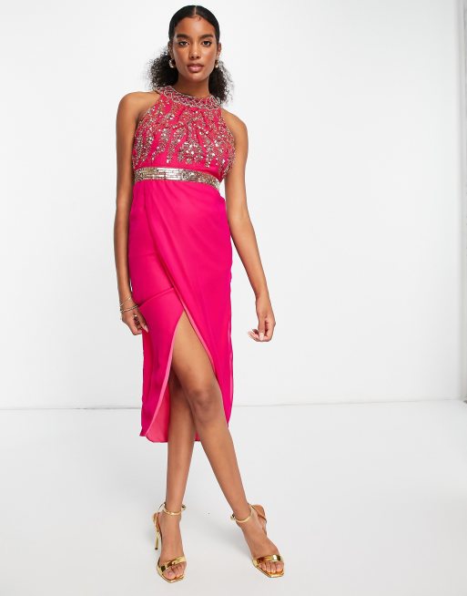 Virgos Lounge – Verziertes 2-in-1-Ballkleid mit Bleistiftrock in Fuchsia