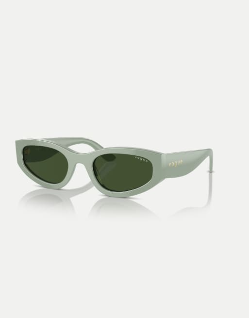 Vogue – Unregelmäßig geformte Sonnenbrille in durchgehendem Hellgrün mit grünen Gläsern