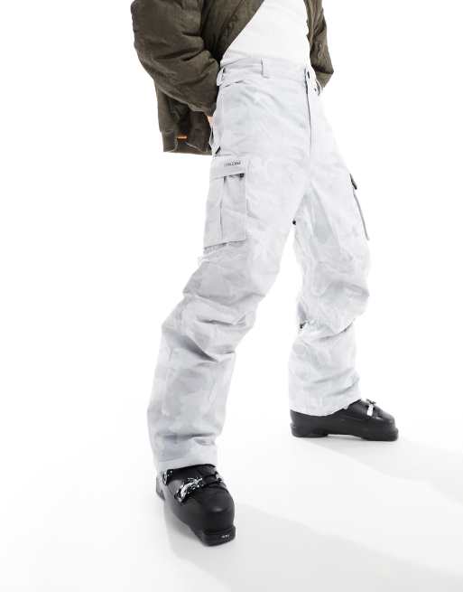 Volcom – Newark – Weite Skihose in Weiß mit Military-Muster