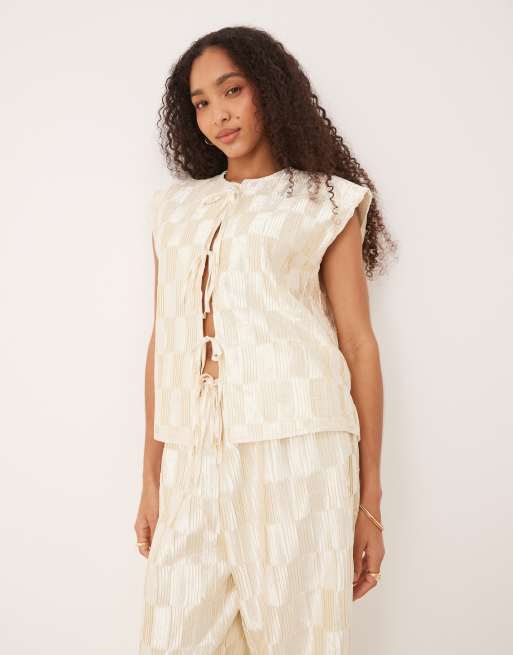 VRG GRL – Enni – Plissiertes Hänger-Trägertop in Cremeweiß mit gebundener Vorderseite, Kombiteil