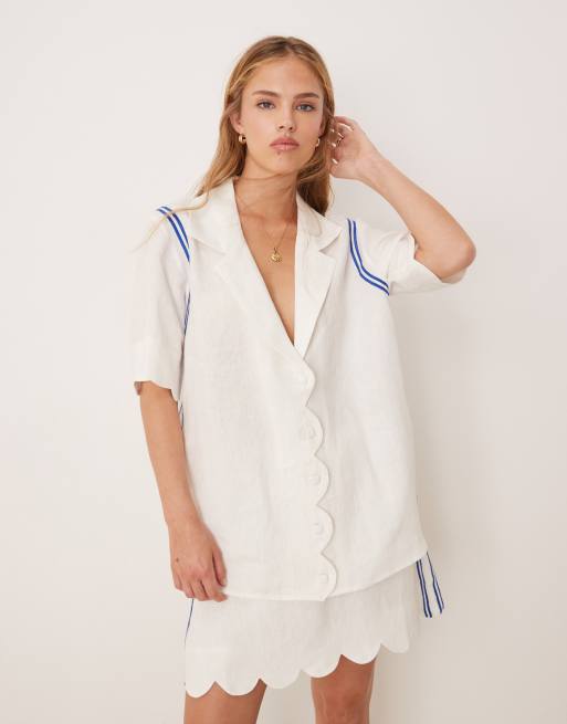 VRG GRL – Gigi – Leinen-Hemdbluse in Weiß mit Bogenkante, Kombiteil