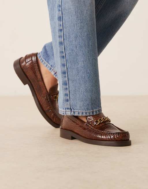 Walk London – Dalston – Loafer aus geprägtem Leder in Hellbraun mit Kettendetail