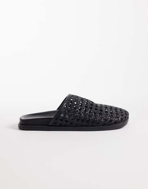 WALK LONDON – Lara – Gewebte Mules aus Leder in Schwarz