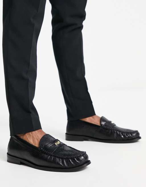 Walk London – Riva – Pennyloafer aus Leder in Schwarz mit Schlangenmuster
