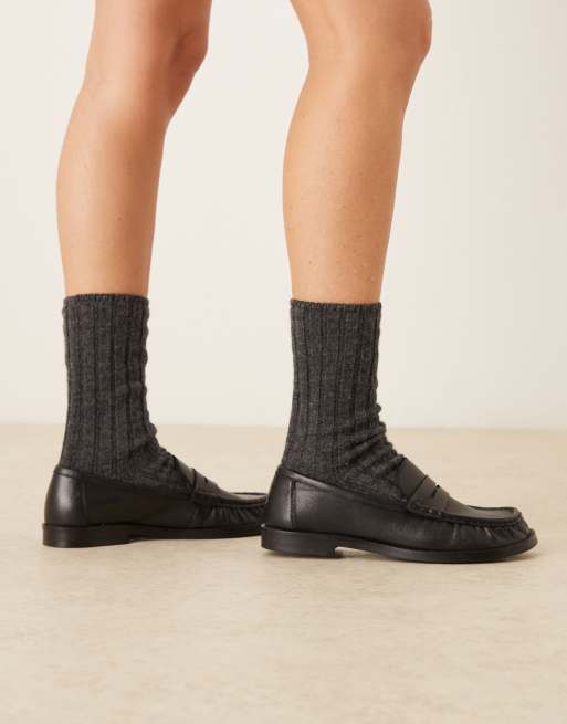 Walk London – Valentina – Leder-Loafer in Schwarz mit Raffung