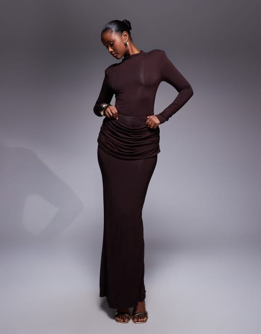 Wanderdoll – Ashtin – Hautenger Maxirock in Espresso mit Drapierung, Kombiteil