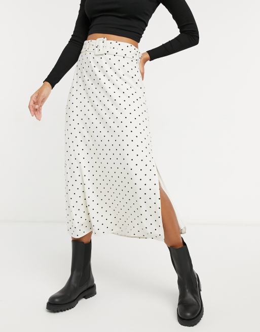 Warehouse – Gepunkteter, mehrfarbiger Midirock mit Gürtel