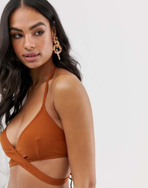 Warehouse – Hellbraunes Bikinioberteil mit gewickelter Vorderseite