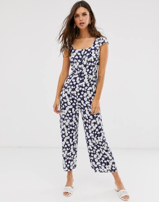 Warehouse – Jumpsuit mit Flügelärmeln in Marine
