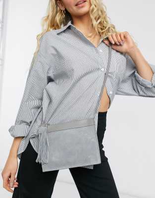 Warehouse – Umhängetasche in Grau aus Wildleder mit Quaste