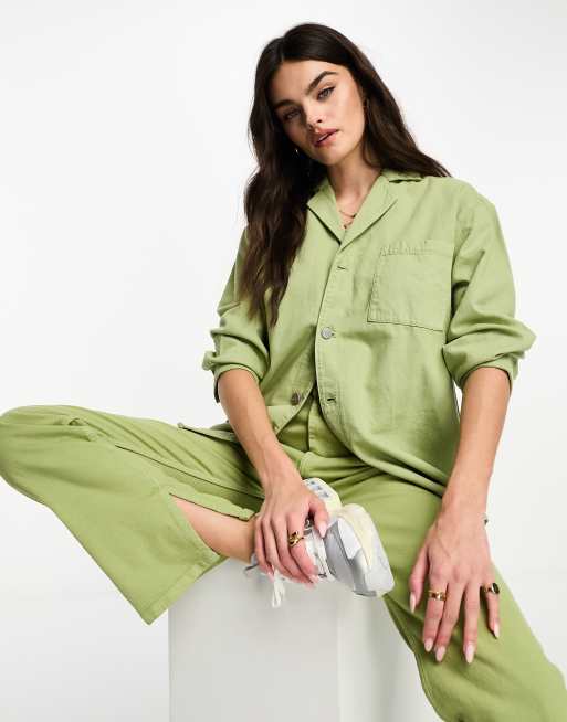 Waven – Oversize-Hemd aus Denim in Salbeigrün
