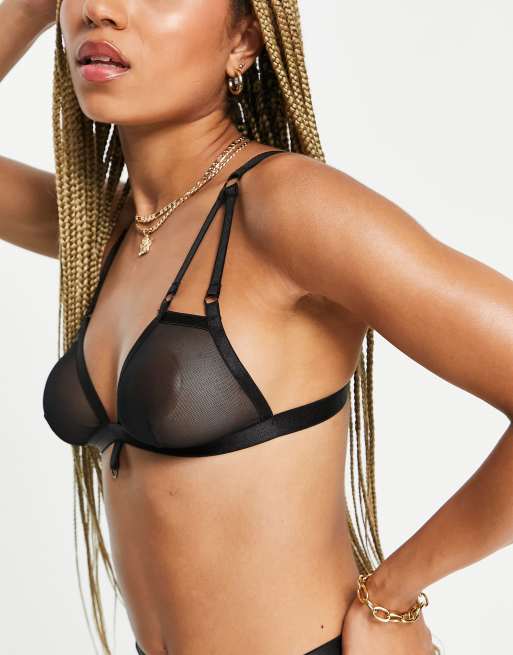 We Are We Wear – Triangel-Bustier aus Netzstoff in Schwarz mit Ringdetail - BLACK