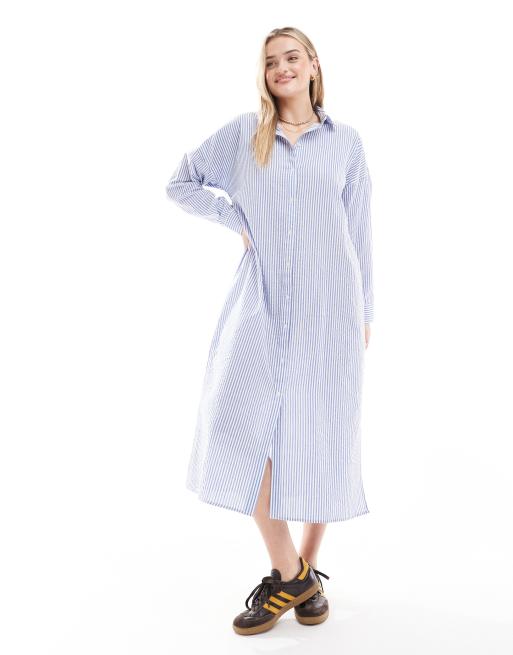 Wednesday's Girl – Hemdblusenkleid in gestreiftem Blau mit Knopfleiste