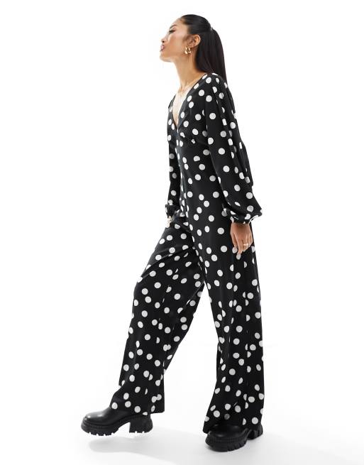 Wednesday's Girl – Jumpsuit in Schwarz mit Punktemuster und V-Ausschnitt