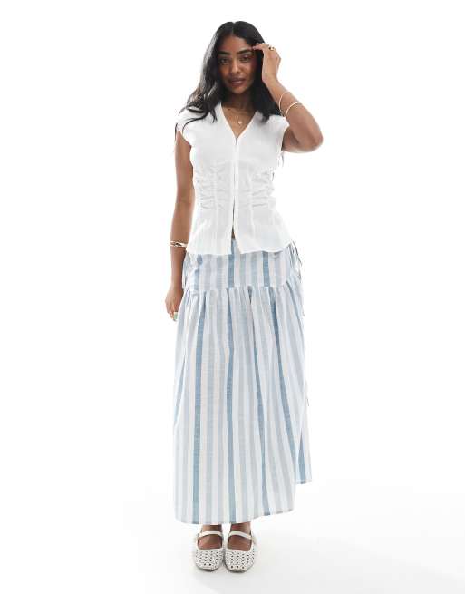 Wednesday's Girl – Midirock in Blau mit auffälligen Streifen