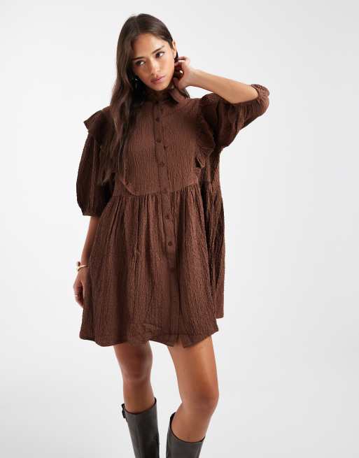 Wednesday's Girl – Mini-Hängerkleid in Braun mit Rüschen-Detail