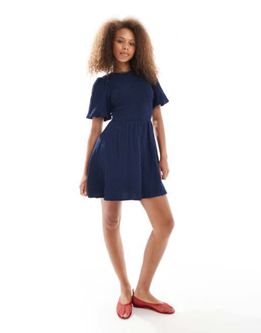 Wednesday's Girl – Minikleid in Mittelblau mit geraffter Brustpartie und Puffärmeln