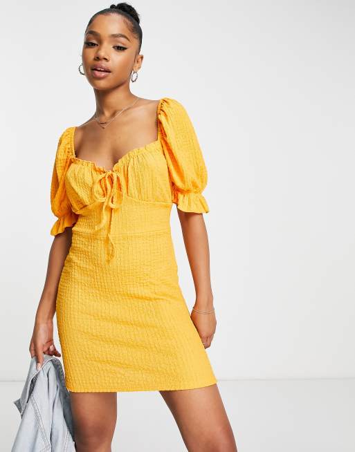 Wednesday's Girl – Strukturiertes Mini-Freizeitleid mit Puffärmeln in Orange