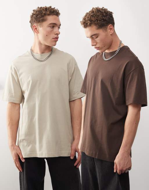 Weekday – 2er-Pack Oversized-T-Shirt in Beige und Braun