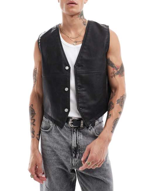 Weekday – Alfons – Weste aus Kunstleder in Schwarz
