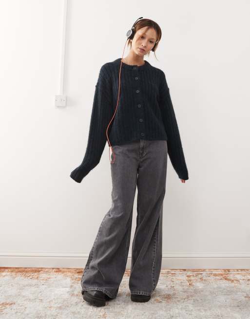 Weekday – Alika – Strickjacke aus Grobstrickwollmix in Marineblau meliert
