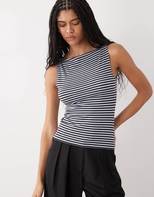 Weekday – Annie – Weiches, ärmelloses Oberteil in Schokobraun und Hellblau mit U-Boot-Ausschnitt und Streifen, exklusiv bei ASOS