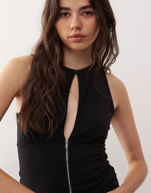 Weekday – Ärmelloses Oberteil in Schwarz mit schmalem Schnitt und Schlüsselloch-Zierausschnitt