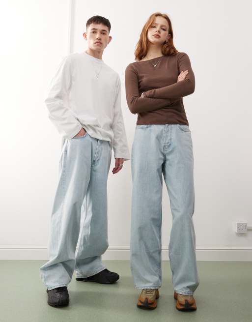 Weekday – Astro – Weite Unisex-Jeans in Hellblau mit tiefem Bund