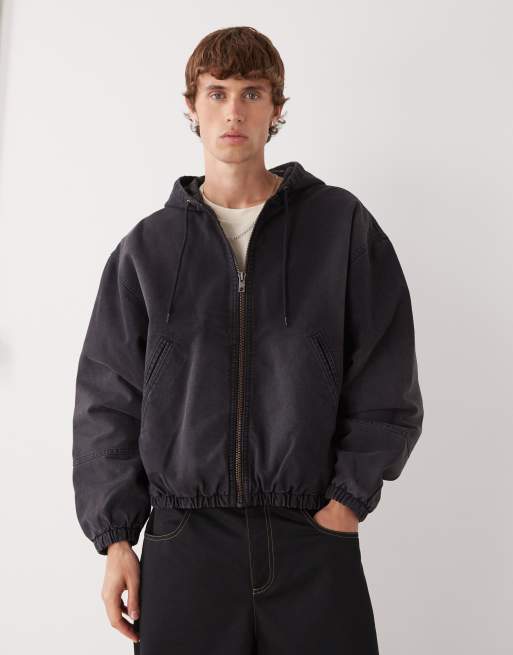 Weekday – Bomberjacke in verwaschenem Schwarz mit Kapuze