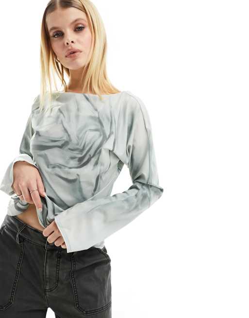 Weekday – Derya – Bluse in gemustertem Grau mit drapiertem Rückenausschnitt