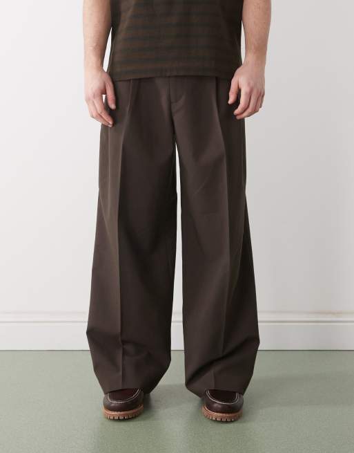 Weekday – Elegante Hose in Braun mit weitem Bein und Bundfalten