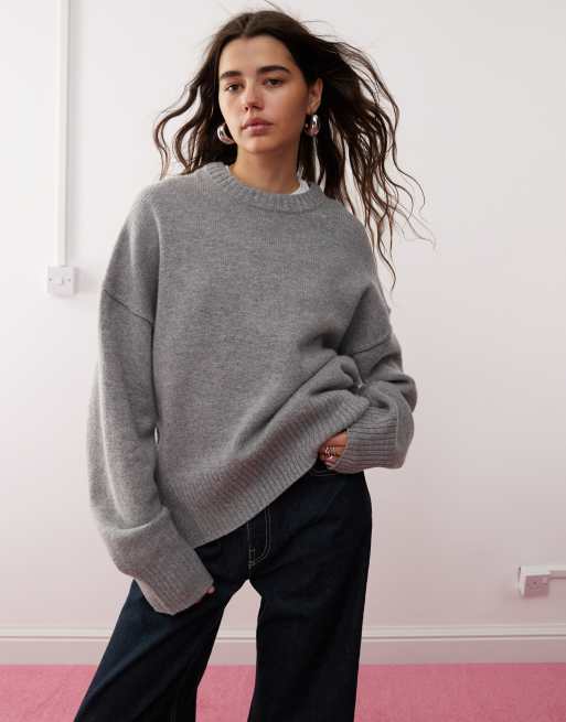 Weekday – Elissa – Oversize-Pullover aus Wolle in meliertem Grau