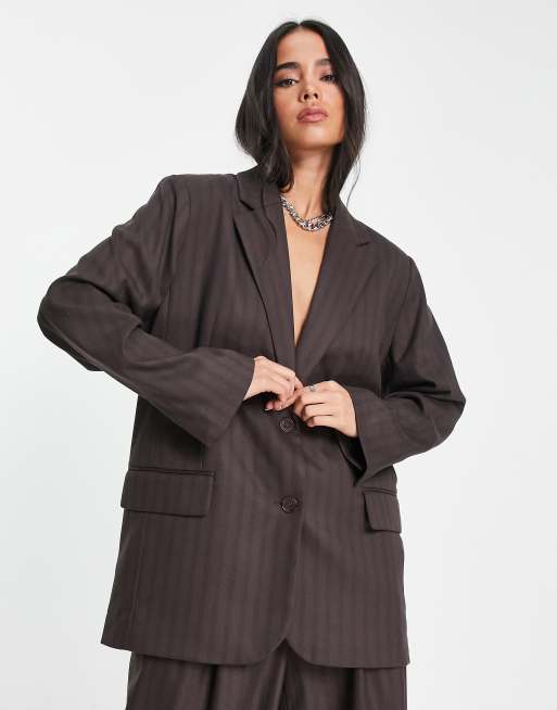 Weekday – Erin – Gestreifter Blazer in Braun, Kombiteil