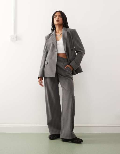 Weekday – Gestreiftes Blazer-Set in Grau meliert