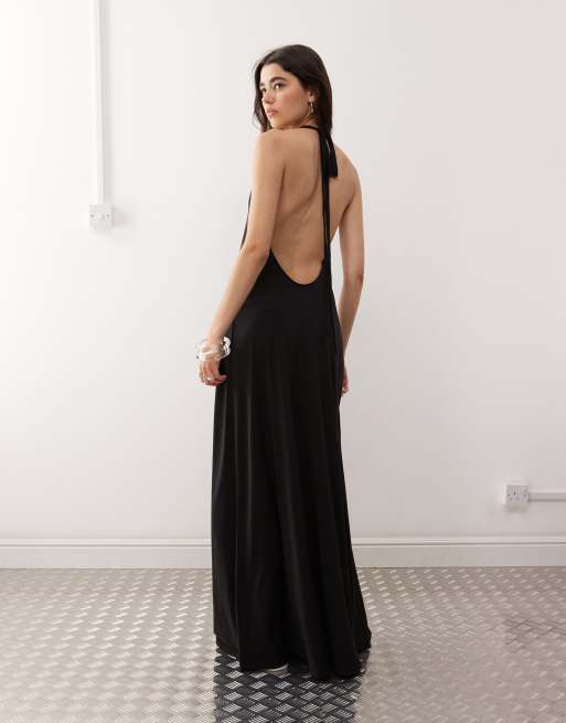 Weekday – Halbtransparentes Neckholder-Maxikleid in Schwarz