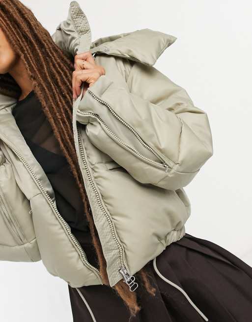 Weekday – Hanna – Kurze Steppjacke in Beige mit Kapuze