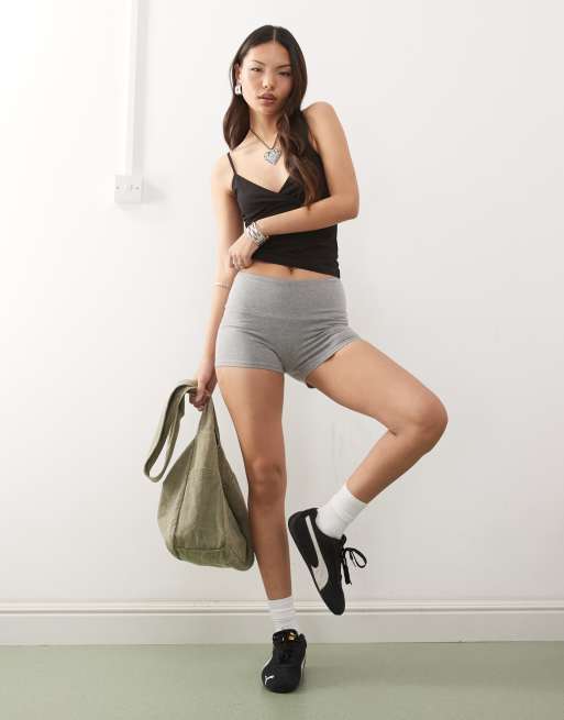 Weekday – Hot Pants aus Jersey in meliertem Grau