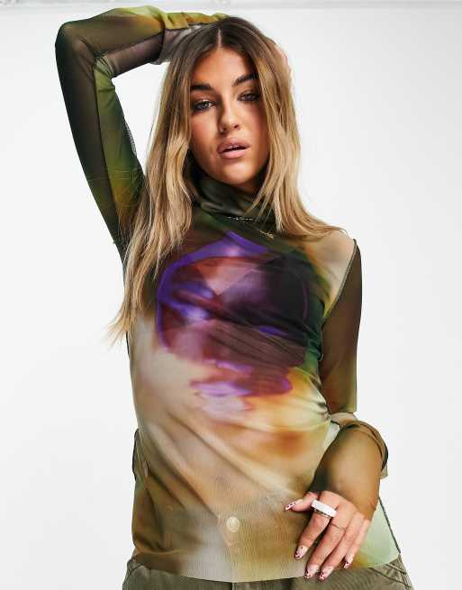 Weekday – Immerse – Langärmliges Oberteil aus Polyester mit Stehkragen und abstraktem Muster - MULTI