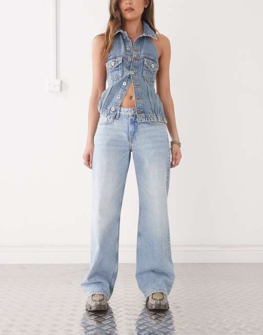 Weekday – Imoo – Jeans in verwaschenem Blau mit niedrigem Bund und weitem Bein
