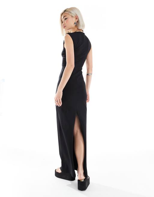 Weekday – Inez – Schmal geschnittenes Maxikleid in Schwarz mit Schlitz hinten