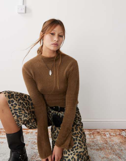Weekday – Jenny – Flauschiger Strickpullover in Braun