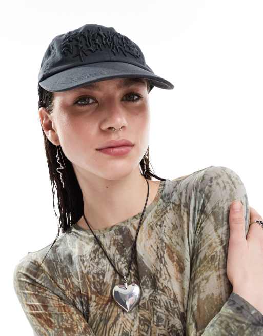 Weekday – Kappe in verwaschenem Schwarz mit farblich abgestimmter Stickerei