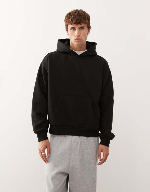 Weekday – Kastiger Oversize-Kapuzenpullover aus schwerem Jersey in Schwarz